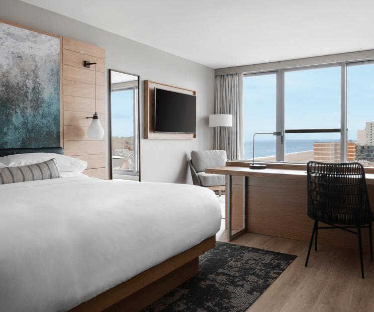 The seven-story hotel offers two fine dining restaurants, the Hunt Room Tavern, and an onsite distillery named “The Tarnished Truth.” Guest can enjoy the refurbished indoor saltwater pool, the SeaHill Spa featuring a Himalayan Salt room, and the grand ballroom.