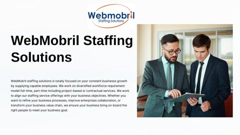 WebMobril staffing solutions is totally focused on your constant business’s growth by supplying capable employees. We work on diversified workforce requirement model; full-time, part-time including project-based or contractual services.