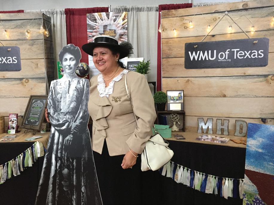The WMU of Texas booth in the exhibit area at the Hispanic Baptist Convention centered on making disciples who make disciples. Participants enjoyed having their pictures made with the “I am Texas Missions” poster and Mary Hill Davis.