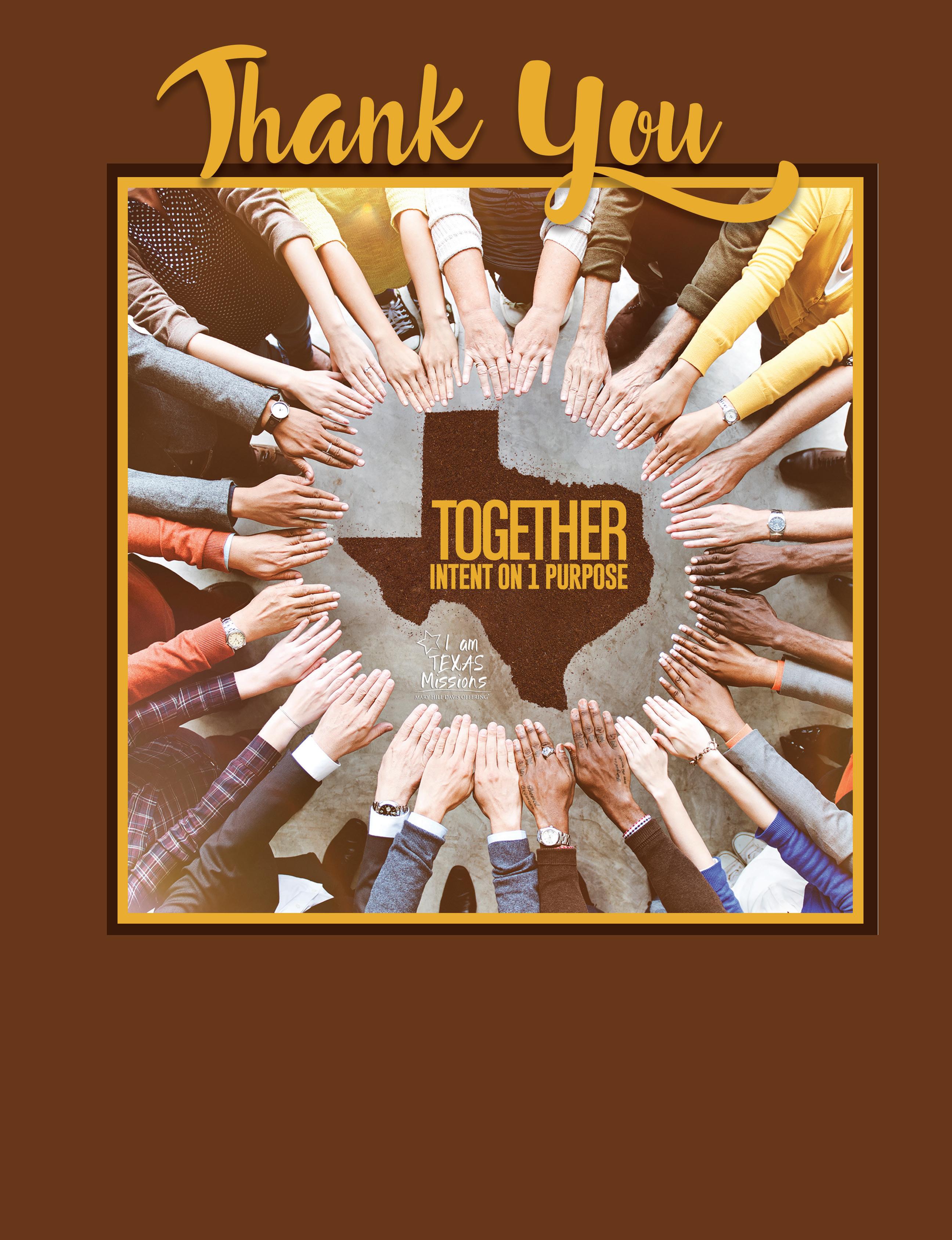The Word of God tells us that we are to “give thanks in all circumstances; for this is the will of God in Christ Jesus for you” (1 Thessalonians 5:18, ESV). So, with gratitude in my heart, I thank you for the many ways you have partnered with WMU of Texas to impact our state since our last report.