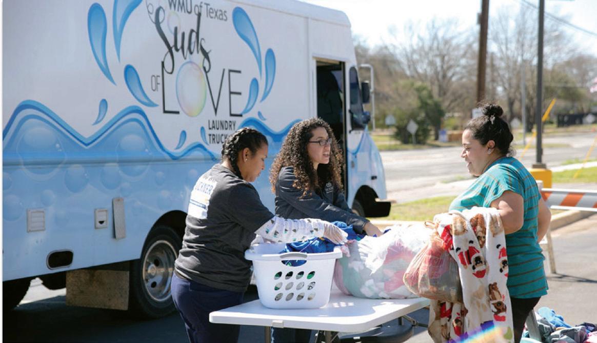 In October of 2017, WMU of Texas partnered with the Buckner Family Hope Center at Bachman Lake in Dallas to serve families with our Suds of Love mobile laundry unit. While stationed on the grounds of an elementary school, the laundry unit was used to wash laundry, at no cost, for families assisted by the Family Hope Center and the school. Several WMU of Texas and Buckner International staff members served as volunteers and were the launders that day, providing dignity and service to each person seeking help. Through this one day of service, other elementary schools in the