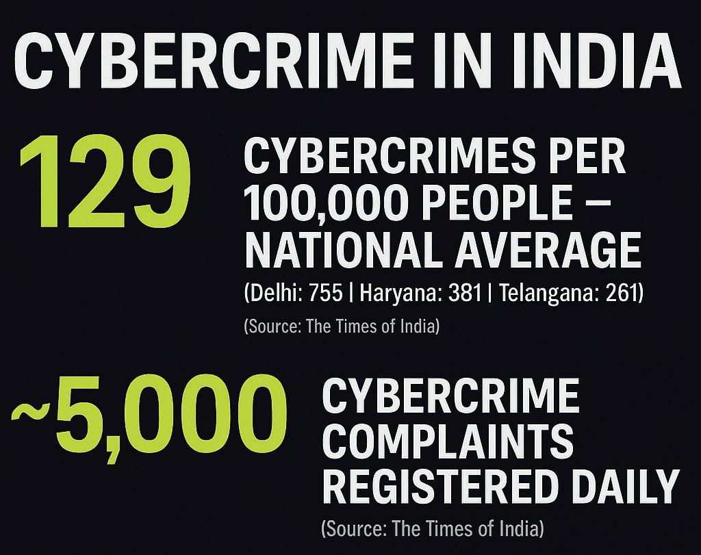 On average, about 5,000 cybercrime complaints were registered in India daily, the Times of India reports.