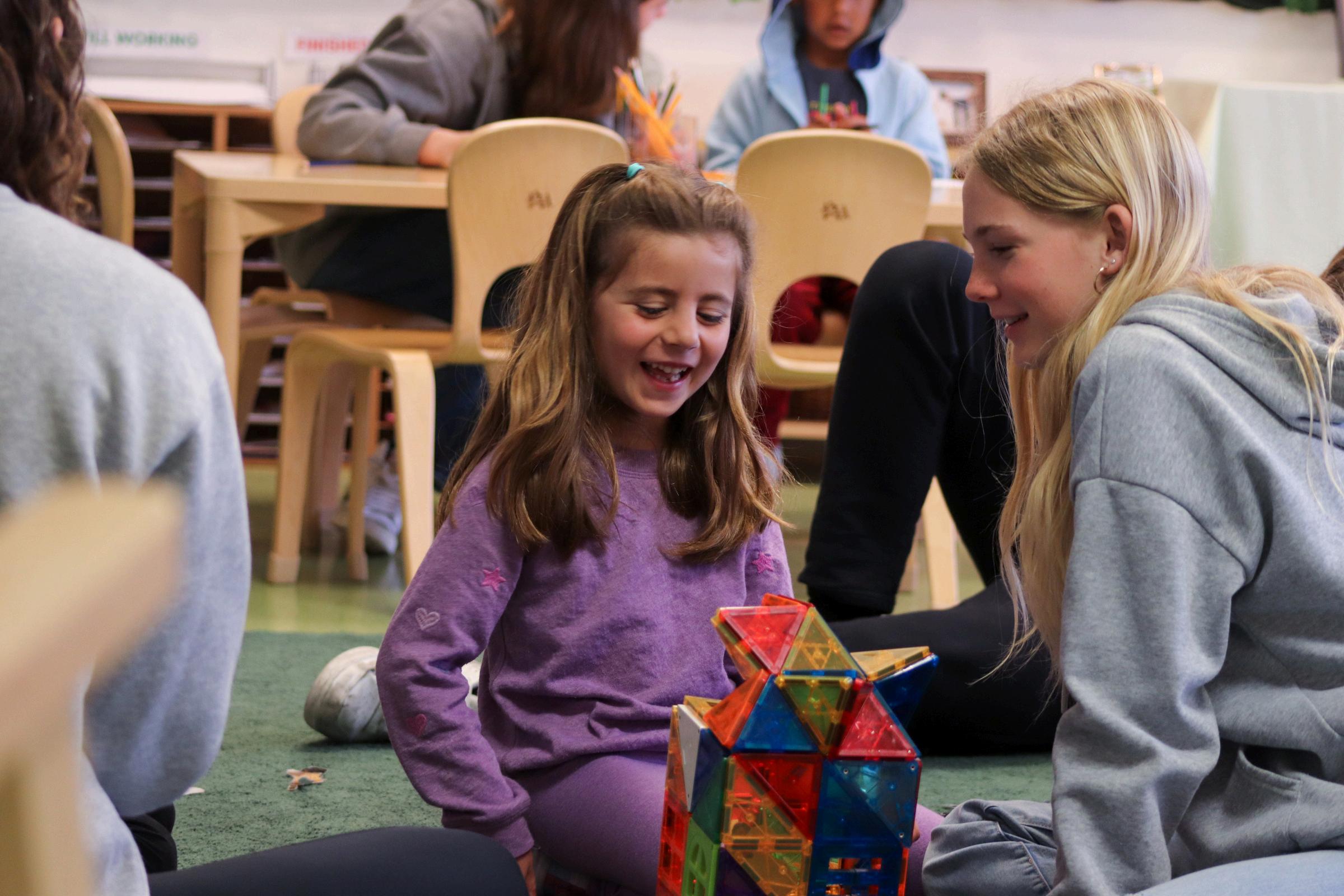 Kindergarten and 8th grade buddies spent time playing and drawing together inside the Kindergarten classrooms. They enjoy telling each other stories, building with legos and blocks, and just spending time together. The excitement about buddies is palpable as soon as the middle school students enter their buddy’s classrooms. Their relationships continue to grow!
