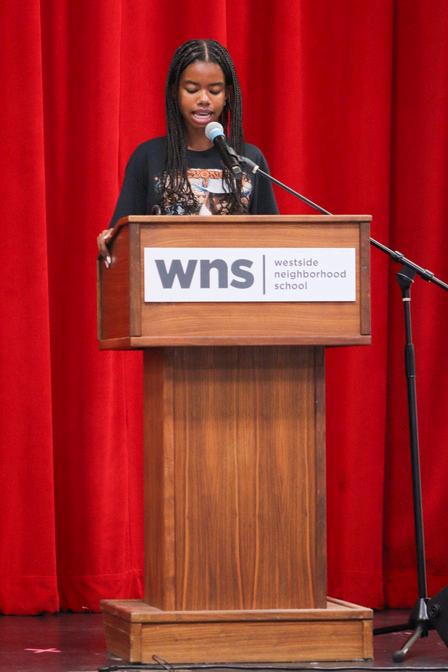 Thirty-four 8 grade students who were interested in speaking at graduation shared their speeches with an audience of 6th-8th grade students and faculty We were incredibly impressed by the thoughtfulness and courage shown by all who presented in front of their peers. The following students have been selected to share their speeches at graduation: Karlo Aluisi, Remi Benyamin, Jordan Brookins, Blakeley Filliettaz, Lily Hopkins, Gia Morris, Zev Shapiro, Luna Steudler, and Tyson Thompson. Congratulations to all the students who participated we are proud of all of you!