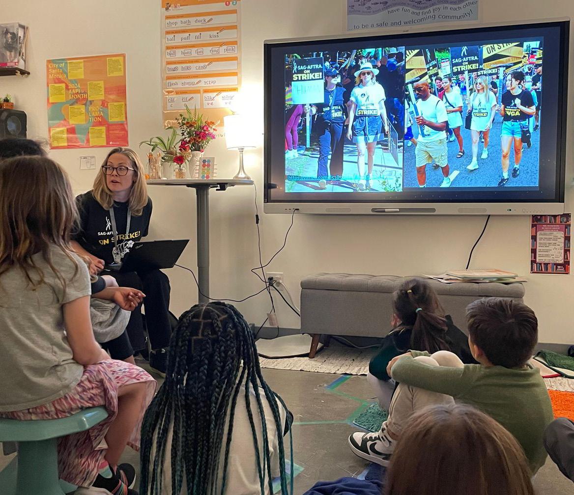 We also welcomed Sarah Fowler, John’s mom, who is a lawyer for the Screen Actors Guild and Writers strikes! Sarah spoke to second graders about collective action. She also partnered with other parents who could offer different perspectives of the strikes. This included Easton’s mom, who is a lawyer; Owen’s dad, who is an actor; and Greer’s dad, who photographed the strikes. Our students had a lot to say about this presentation because many of them had walked the picket line with their families!