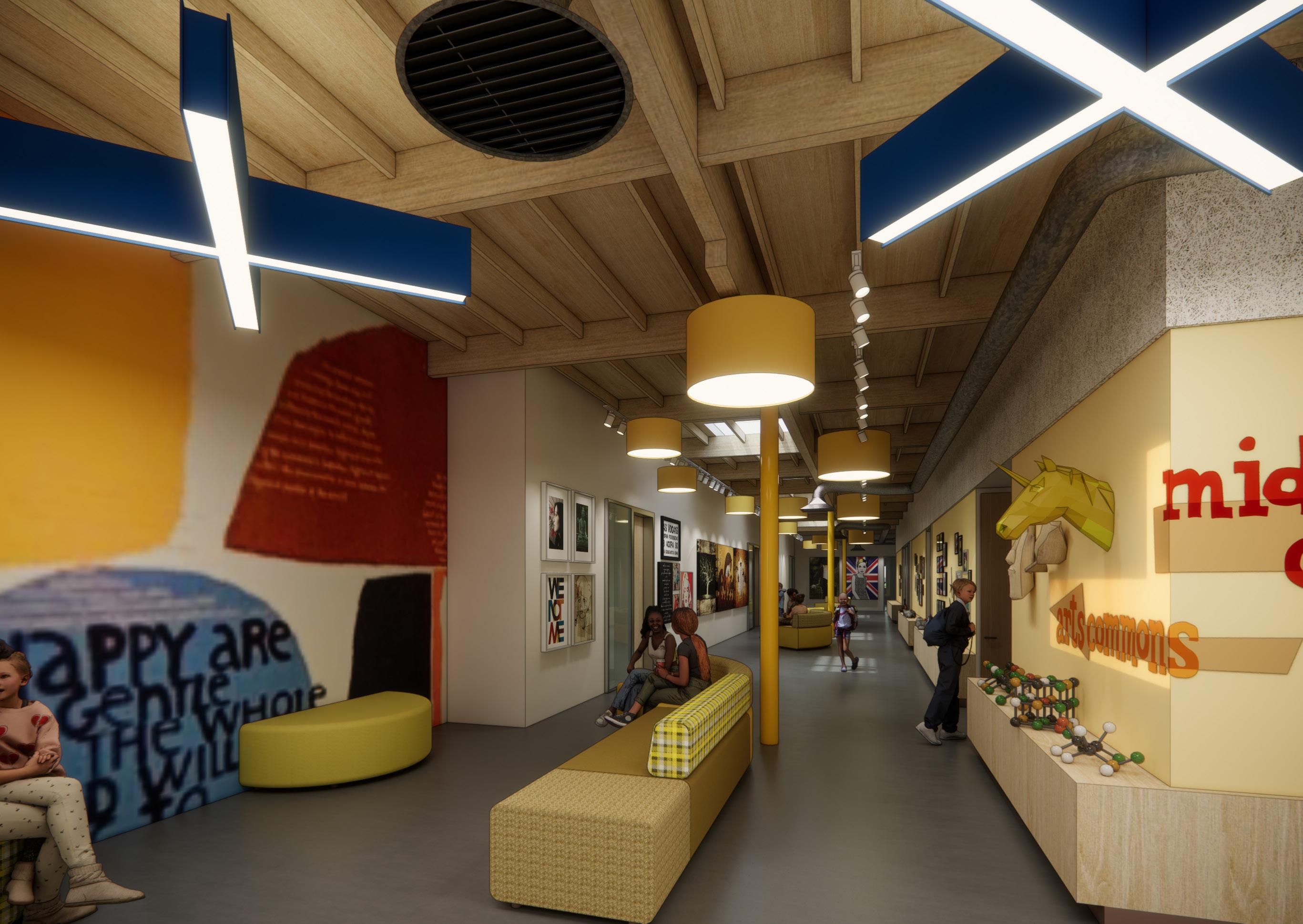 Middle School Commons: The commons will provide a dedicated space for middle schoolers to make their own, with a room to socialize, gather, hold student council meetings, do group projects, and feel a sense of ownership over their space.