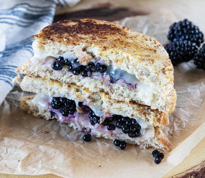 Place bread mayo-side-down in skillet. Top with cheese and blackberries. Add second slice of bread mayoside-up.