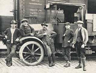 DieMenschenversorgen:AufdemGüterbahnhofderGroßmarkthalleanderThalkirchnerStraßekümmernsichArbeiterinnenundArbeiterumeinenmitKartoffelnbeladenen Lastwagen(AufnahmeausdemJahr1920).