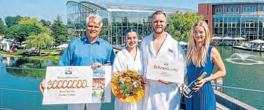 nommen. Der 25-jährige aus Rottweil war in Begleitung seiner Freundin Anni K. angereist und besucht die Therme Erding bereits zum dritten Mal. Das hier ist unser erster Urlaub seit Corona und gleich so eine Überraschung zu bekommen ist unglaublich. Das ist auch der größte Gewinn, den ich jemals in meinem Leben bekommen habe, deswegen ist die Freude umso größer , so Luis L. Auch Thermen-Inhaber Jörg Wund freut sich mit den beiden: Den 30-Millionsten Gast heutebegrüßen zu dürfen ist ein großer Meilenstein auf dem Weg zu unserem 25-jährigen Jubiläum, das wir nächstes Jahr feiern. Die gesamte Ther-