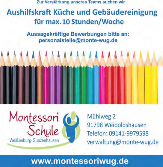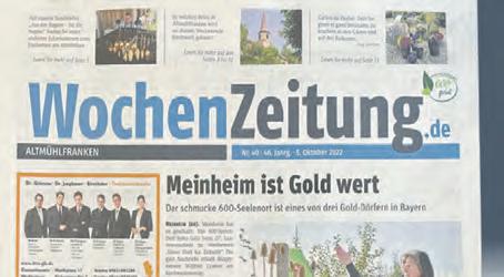 Seite 6 ALTMÜHLFRANKEN ALTMÜHLFRANKEN Nr. 34 · 52. Jahrg. · 23. August 2023 ☎ ANZEIGEN 0 91 41 / 85 93 – 12 REDAKTION 0 91 41 / 85 93 – 21 ✉ POST Rothenburger Straße 14 91781 Weißenburg E-MAIL anzeigen@wochenzeitung-online.de ☎ ZUSTELLUNG 0151 / 62 825 335 E-MAIL zustellung@wochenzeitung.de