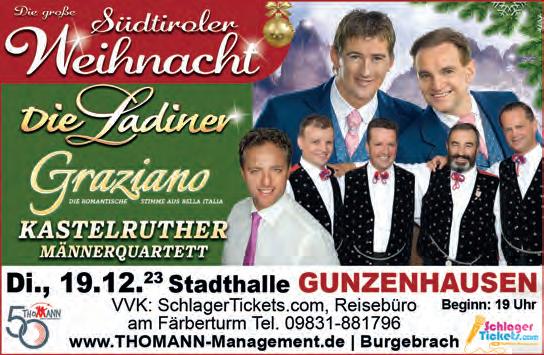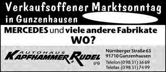 www.vr-sf.de Danke fürIhr Vertrauen! Wirwünschen Ihnen schöne Kirchweihtage in Gunzenhausen! VielVergnügen aufderKirchweih! IhreSparkassewünscht Ihnenschöneundgesellige Kirchweihtage. www.spk-gun.de ManmusskeinSuperdadsein umseineFamiliezuschützen! Tel.098315749512 info@bdv-versicherung.de www.bdv-versicherung.de Über100Gesellschaften-EinAnsprechpartner KerstinStoll-Dörr 01739859325 Kostenloszuhausetesten!