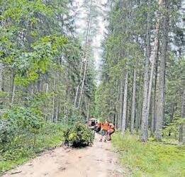 Bereits Ende August im Staatswald Richtung Brombach geschlagen und die ca. sieben km lange Strecke zum „Aufhübschen“ nach Gunzenhausen gebracht: der Kerwabaum.