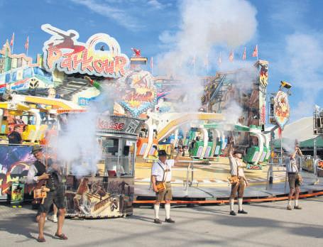 Anschließend folgt der Aufzug des Festwirts zum Kirchweihplatz, wo diese von den Böllerschützen angeschossen wird.