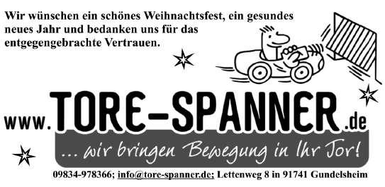 Brigitte Felleiter Tel. 09141 8593-18 anzeigen@ wochenzeitung-online.de Verantwortlich für den redaktionellen Inhalt: Amadeus Meyer Tel. 09141 8593-21 redaktion@ wochenzeitung-online.de Fotonachweis: Stadt Gunzenhausen (Christkind, Titel), Amadeus Meyer (Titel und Innenteil), Brigitte Dorr (Innenteil), WZ-Archiv Geschäftsführer: