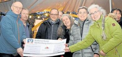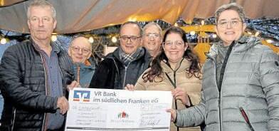 Mitglieder der Bürgerstiftung übergaben im Rahmen des Weihnachtsmarkts ihre traditionelle Spende an die Aktion Wunschbaum und das Freiwillige Soziale Schuljahr der Diakonie Südfranken.
