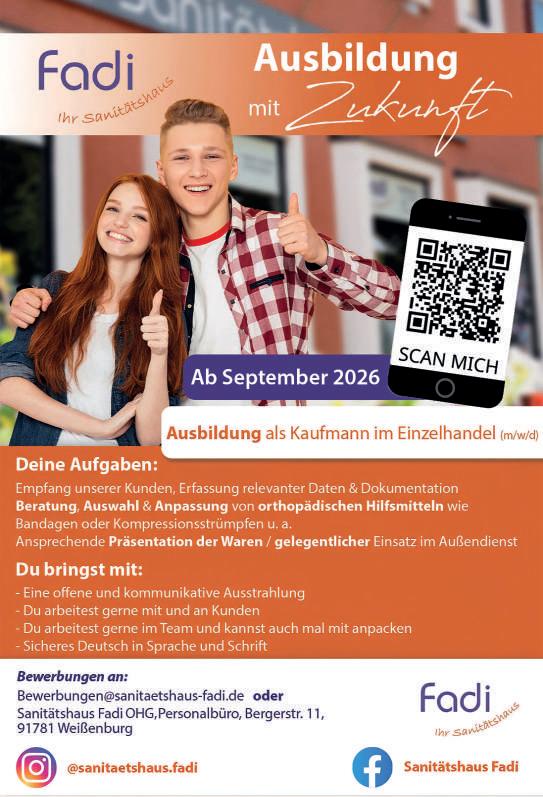 (red). Wer sich jetzt mit Ausbildung beschäftigt, trifft auf viele Möglichkeiten – und ebenso viele Fragen. Wege erscheinen vielfältig, Entscheidungen aber oft unübersichtlich. Die Agentur für Arbeit Ansbach-Weißenburg unterstützt Jugendliche, Eltern und Interessierte dabei, Ordnung in diese Vielfalt zu bringen. Claudia Wolfinger, Vorsitzende der Geschäftsführung der Agentur sagt: Unsere Berufsberatung bietet Orientierung, ordnet Angebote realistisch ein und begleitet den Weg in eine Ausbildung von Anfang an. Sie setzt bewusst früh an – bevor die erste Bewerbung geschrieben ist. Wer unsere Beratung nutzt, kann gezielter suchen und auch oft unbekannte Alternativen mitdenken. Im Landkreis WeißenburgGunzenhausen kamen im abgeschlossenen Ausbildungsjahr 2024/2025 rechnerisch 1,2 Ausbildungsstellen auf eine Bewerber*in. Jugendliche hatten so die Auswahl – Unternehmen standen vor der Aufgabe, sich aktiv um Nachwuchs zu bemühen. Die Agentur für Arbeit begleitet diesen Bewerber*innenmarkt auch im laufenden Jahr und bringt Angebot und Nachfrage zusammen. „Viele Unternehmen halten trotz wirtschaftlich angespannter Rahmenbedingungen an Ausbildung fest. Das ist ein wichtiges Signal und zeigt, dass unsere regionalen Unternehmen weiter Zukunft bauen wollen , so Wolfinger Ausbildung bleibe ein essentieller Baustein zur Fachkräftesicherung. Unsere Angebote schaffen dabei für beide Seiten Klarheit. Sie helfen jun-