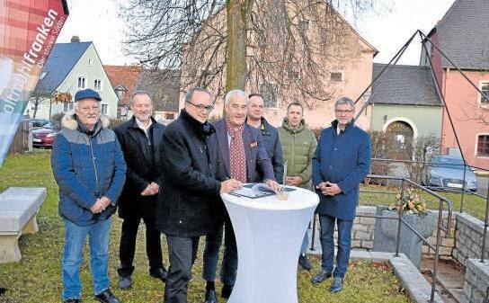 Markt Berolzheim (red). Landrat Manuel Westphal und Dr Ludwig Spaenle, der Beauftragte der Bayerischen Staatsregierung für jüdisches Leben und gegen Antisemitismus, für Erinnerungsarbeit und geschichtliches Erbe haben jetzt vor dem Sühnemal in Markt Berolzheim, wo einst die jüdische Synagoge stand, eine Kooperationsvereinbarung für jüdisches Leben und gegen Antisemitismus unterzeichnet.