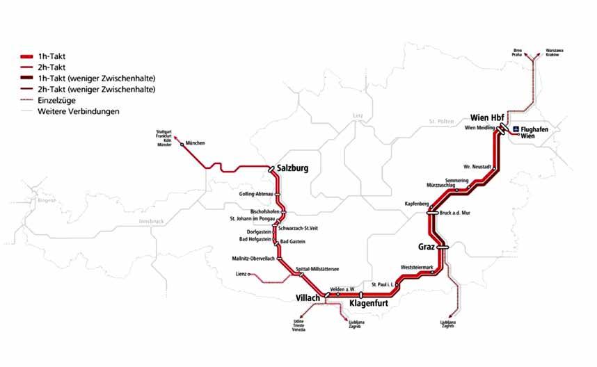 Salzburg-Villach 1-Std.-Takt mit 20 Direktverbindungen