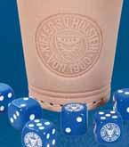 Ein Wurf zum Glück! Dieser edle Würfelbecher aus Leder kommt mit sechs Würfeln, welche an Stelle der sechs natürlich das Vereinswappen zeigen.