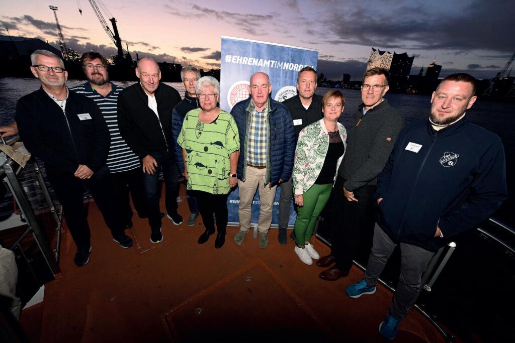 Am Wochenende vom 28.-29. September 2024 wurden die diesjährigen DFBEhrenamtspreisträger*innen in Hamburg geehrt. Der Hamburger Fußball-Verband (HFV) empfing die Preisträger*innen aus Bremen, Mecklenburg-Vorpommern, Hamburg und Schleswig-Holstein mit einem abwechslungsreichen Programm, das von einer Stadtrundfahrt über die Plaza der Elbphilharmonie bis hin zu einer Hafenrundfahrt reichte. HFV-Präsident Christian Okun würdigte die Ehrenamtlichen während der Fahrt und überreichte gemeinsam mit den Verbandsvertreter*innen Urkunden und DFB-Uhren. Der Abend klang gemütlich mit traditionellen Hamburger Spezialitäten und einem geselligen Beisammensein aus. Das nächste Dankeschön-Wochenende findet in Mecklenburg-Vorpommern statt.