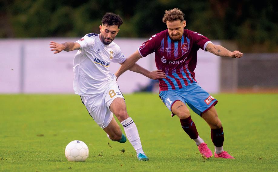 Ähnliches gilt auch für den SV Todesfelde – jedoch unter völlig anderen Voraussetzungen. „Deathfield“ stand im Mai 2024 Kopf, als der erste Regionalliga-Aufstieg der Vereinsgeschichte unter Dach und Fach gebracht wurde. „Demütig bleiben und von Spiel zu Spiel schauen“, lautet die Devise von SVT-Kapitän Kai-Fabian Schulz. „Natürlich wollen wir am Ende der Saison über dem Strich stehen und die Klasse halten. Dafür wollen und müssen wir in jeder Partie 100 Prozent geben.“ Zu Saisonbeginn zahlten die Blau-Gelben Lehrgeld, mussten direkt fünf Niederlagen in Folge einstecken. Doch dann platzte beim 3:0-Erfolg in Lohne der Knoten. Elf Zähler aus fünf Spielen, in denen die SVT-Defensive nur einen einzigen Gegentreffer zuließ, sprechen eine beachtliche Sprache.