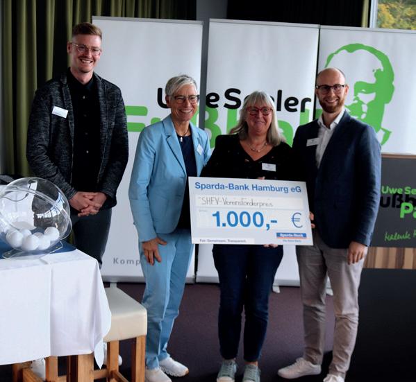 Zusätzlich zum Frauenehrenamtspreis wurde der Vereinsförderpreis überreicht. Die Sparda-Bank Hamburg lobte unter allen Preisträgerinnen zusätzlich 1000 Euro für einen der Klubs aus, um die Arbeit in den Vereinen zu belohnen und diese weiter zu unterstützen, betonte Vertriebsleiter Christian Arp während der Ehrungsveranstaltung. „Losfee“ Sabine Mammitzsch, SHFV-Vizepräsidentin Diversität und Gleichstellung, zog den FC Burg (KFV Westküste) aus dem Topf. Den Siegerscheck nahm Preisträgerin Silvia Lenz dankbar entgegen.