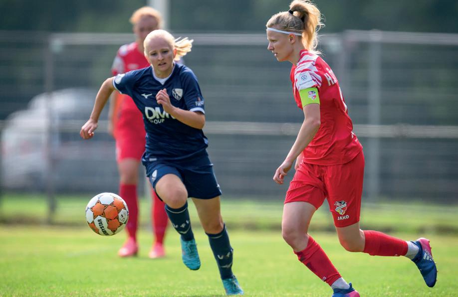 Malin Hegeler positiv gestimmt. „Wir müssen unser Saisonziel, wieder um den Aufstieg zu spielen, jetzt erstmal nach hinten schieben. Wir arbeiten an unserer Defensivarbeit und wollen wieder Punkte holen“, so die 29-jährige Mittelfeldspielerin. „Ich bin froh, dass die Stimmung, trotz dieser Umstände, so gut ist. Das macht uns als Team aus. Wir halten zusammen – auf und neben dem Platz darf der Spaß nicht fehlen. Das ist gerade jetzt besonders wichtig“, ergänzt sie. Nach der Trennung vom langjährigen Cheftrainer Christian Jürss fordert Hegeler: „Jede Spielerin, ob jung oder alt, muss Verantwortung übernehmen, um gestärkt aus der Situation herauszugehen!“ ■