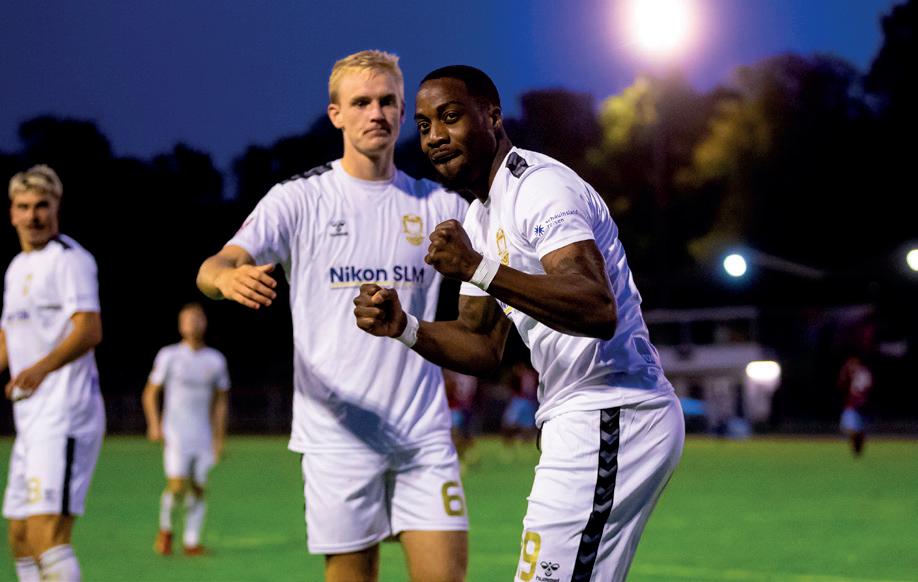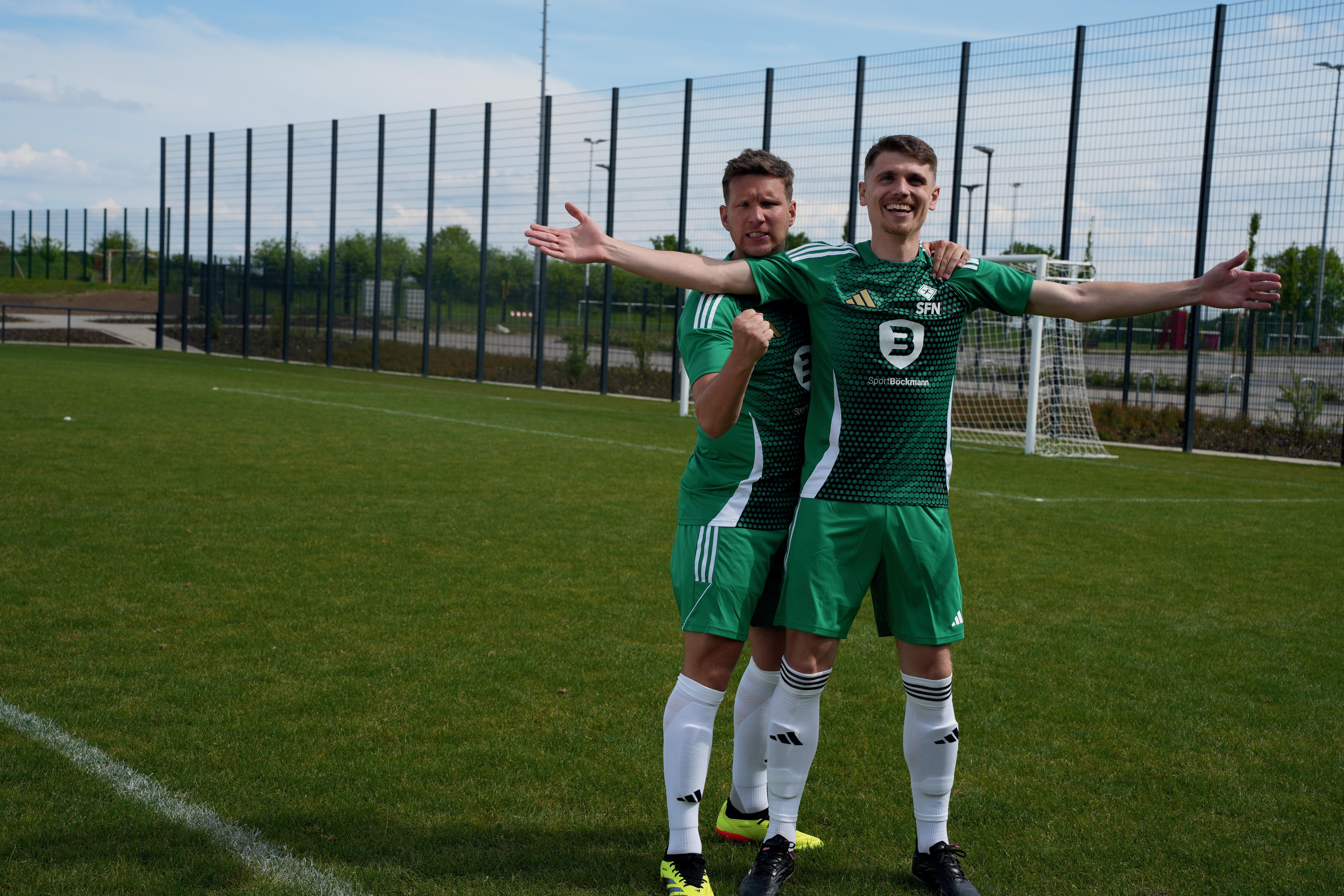 Joseph Ganda (re.) jubelt über seinen Premierentreffer für Phönix Lübeck. (Foto: 54 Grad)