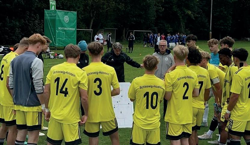 Die U18-Auswahl des Schleswig-Holsteinischen Fußballverbandes hat beim DFB-Sichtungsturnier in Duisburg den neunten Platz belegt. Nach vier Spieltagen zwischen dem 11. und 15. Oktober an der Sportschule Wedau heißt die Bilanz: zwei Siege, ein Remis, eine Niederlage. „Wir haben ein insgesamt gutes Turnier gespielt und wir sind sehr zufrieden mit den Jungs“, betonte Michael Hopp, der das Team als Cheftrainer vor Ort betreute.