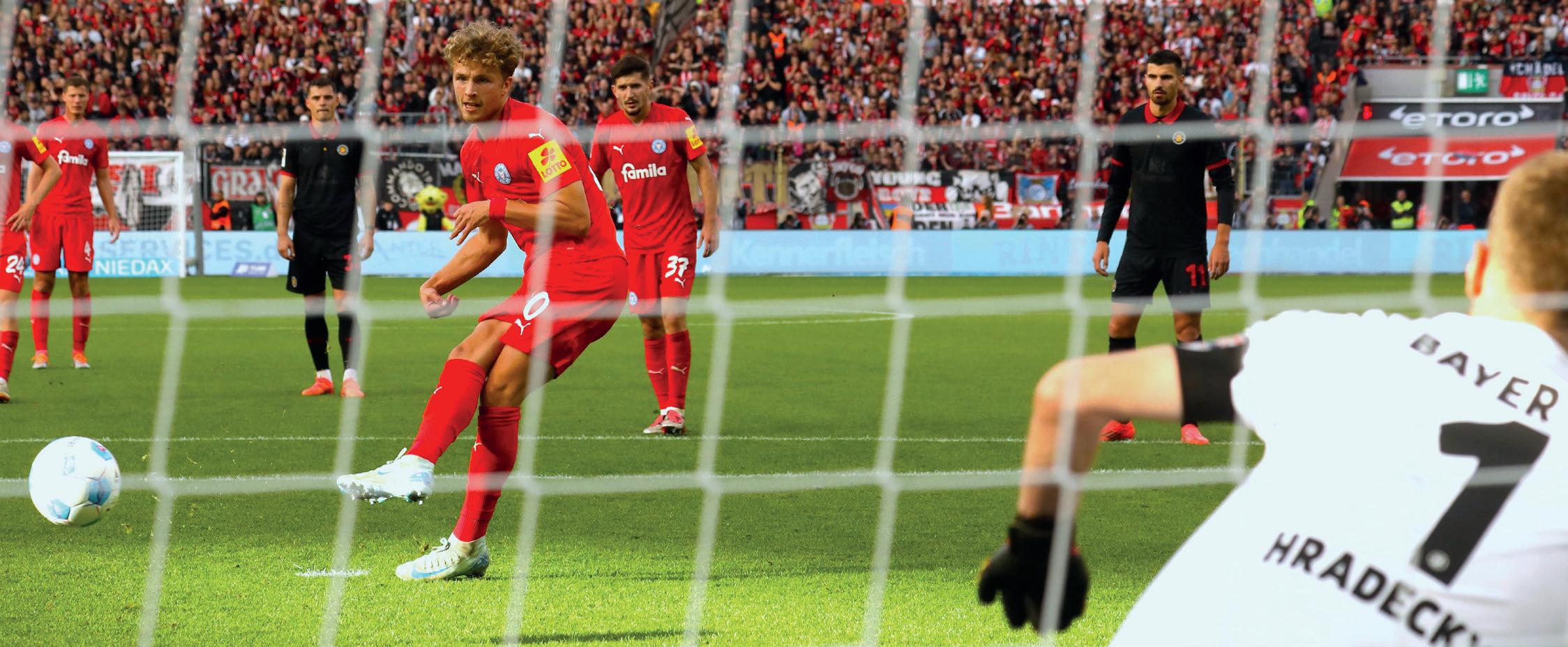 Fiete Arp trifft per Foulelfmeter zum Kieler Ausgleich in der BayArena.