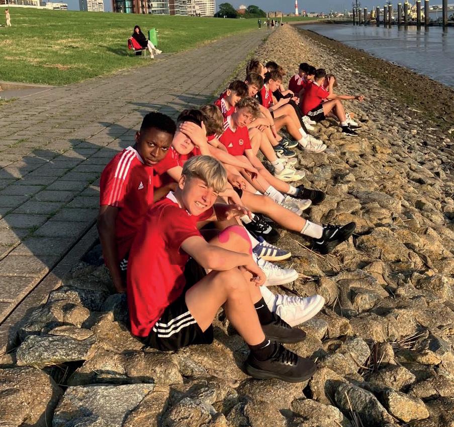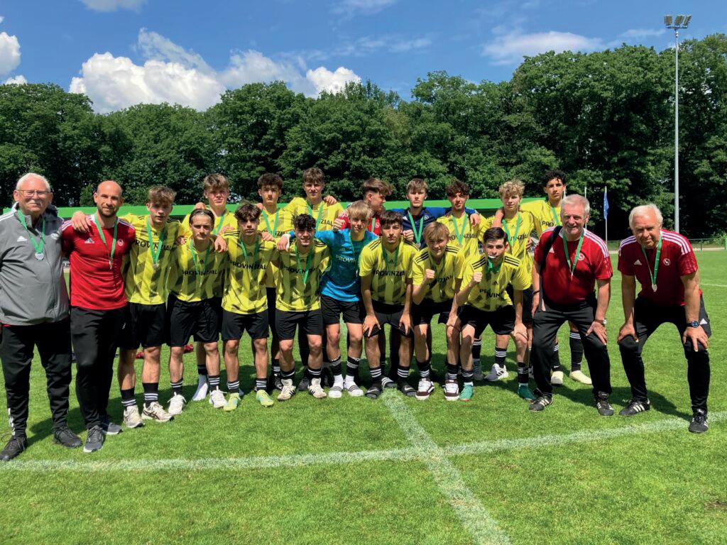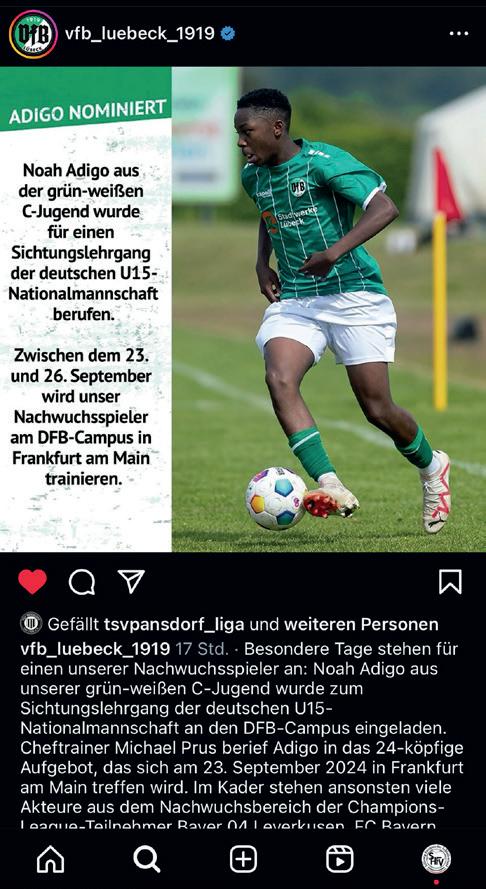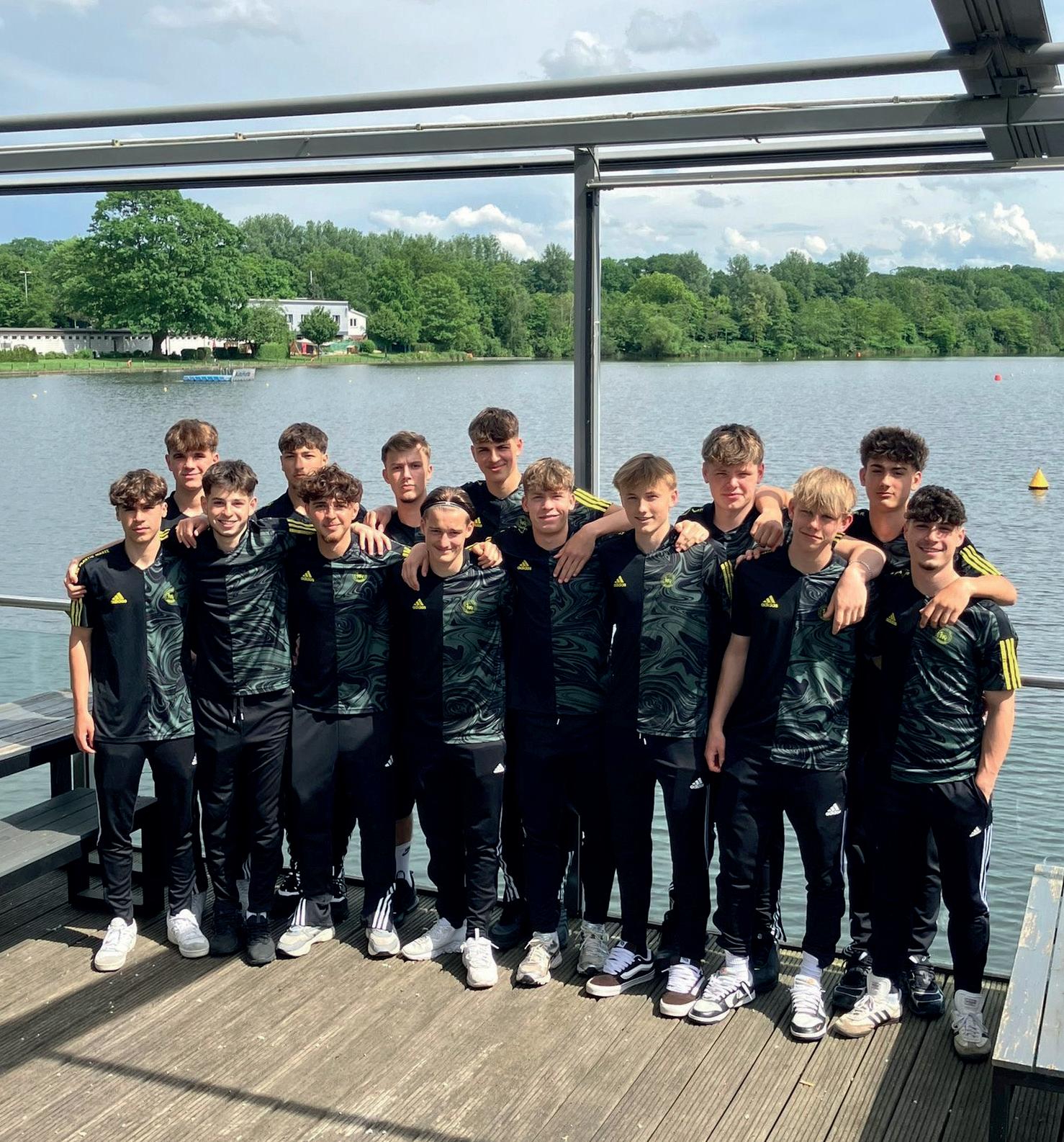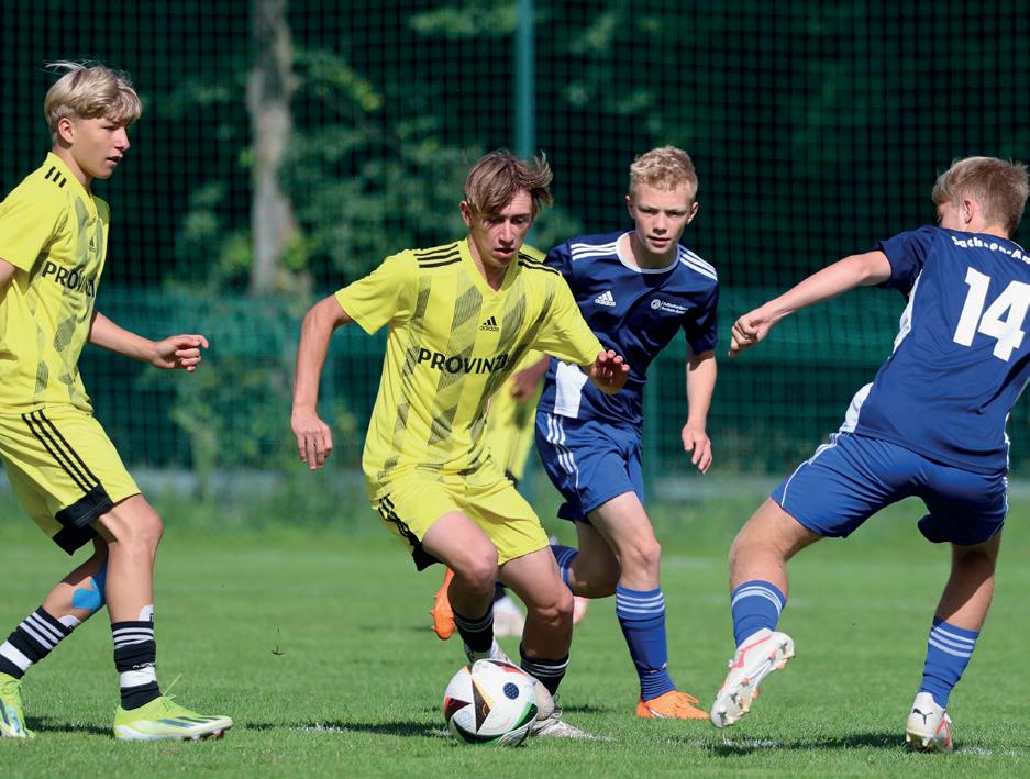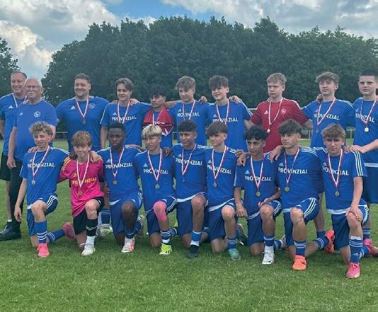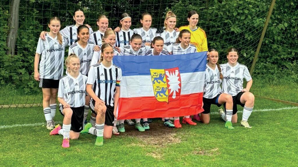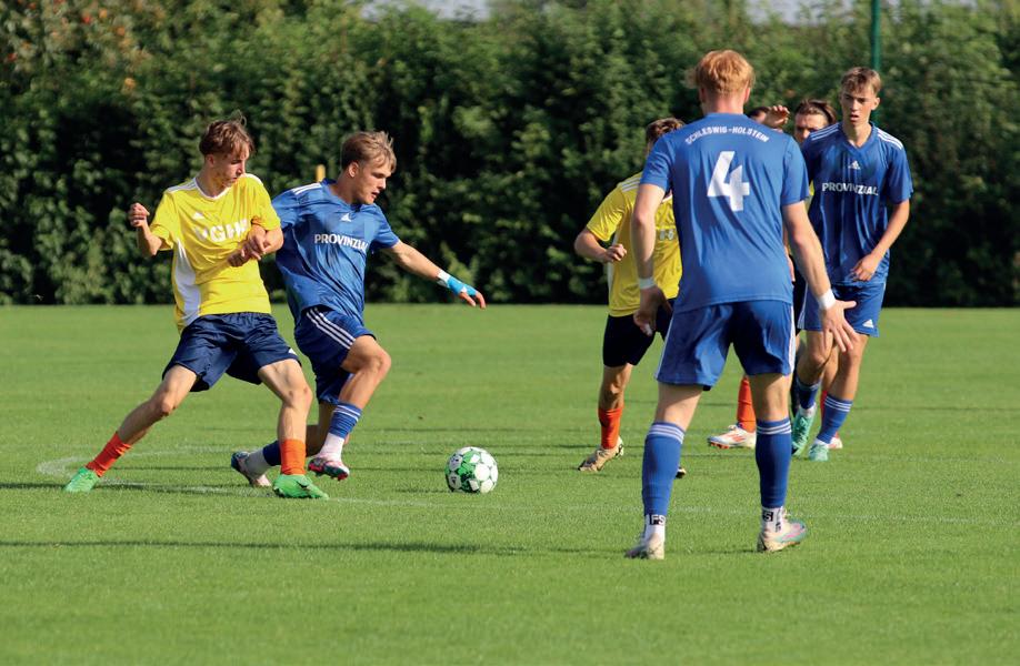Im selben Wonnemonat gewannen die U14-Auswahl des SHFV das diesjährige NFV-Turnier in Bremerhaven – und das ohne in den Spielen gegen die Teams aus Niedersachsen (3:0) und Bremen (1:0) auch nur ein einziges Gegentor hinnehmen zu müssen. Wenige Wochen später belegte man beim DFBSichtungsturnier in Bad Blankenburg den siebten, und damit einen Platz im Mittelfeld. Besonders erfreulich: Mit Noah Adigo vom VfB Lübeck sowie Leve Johannsen von Holstein Kiel reisen im September zwei Talente aus jenem Kader zum U15-Sichtungslehrgang am DFB-Campus in Frankfurt am Main.