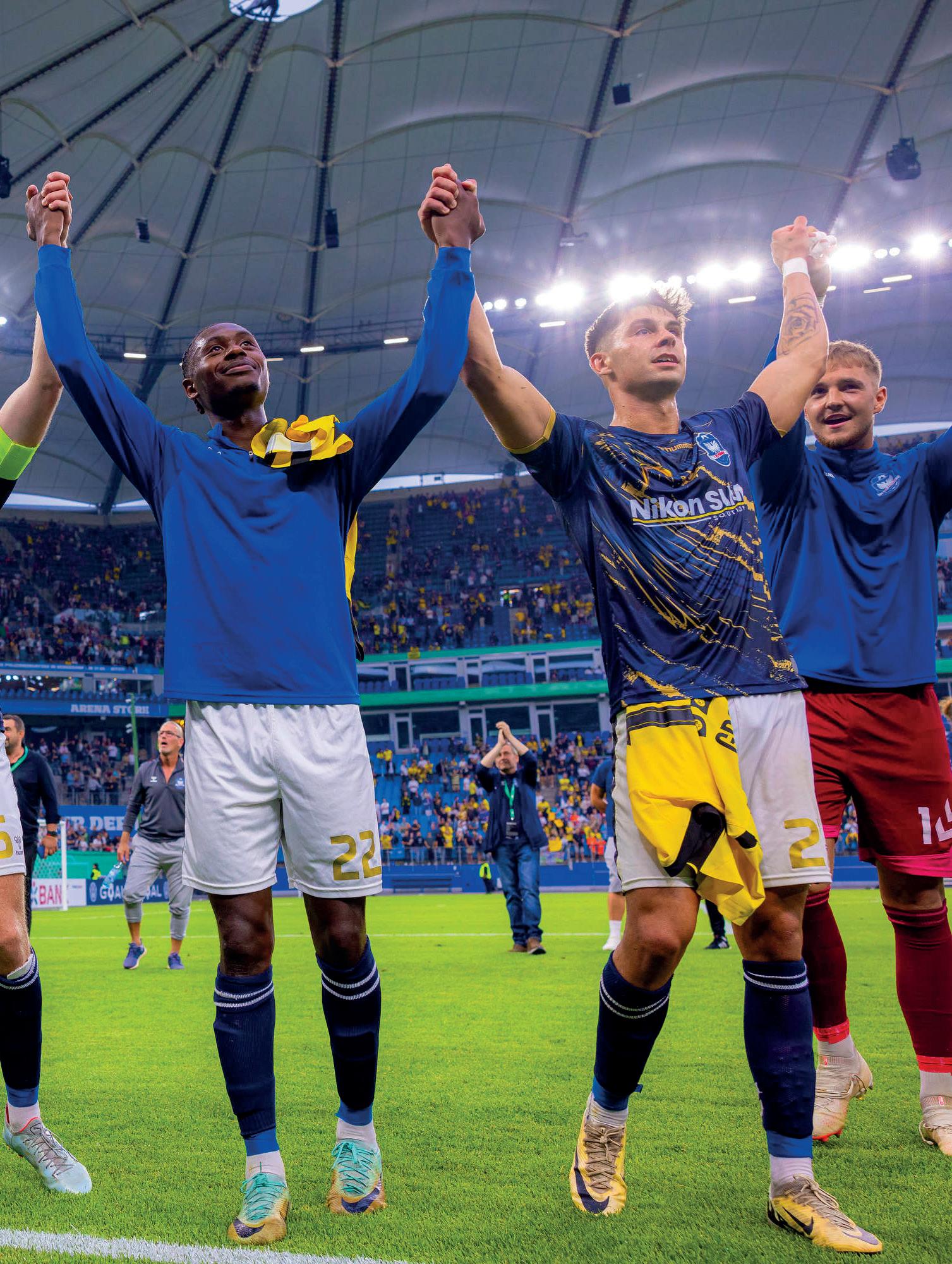 Den öffentlichkeitswirksamsten Auftritt lieferten ohne Fragen die Adler vom 1. FC Phönix Lübeck (siehe Seiten 4 und 5). Ein Erstrundenspiel vor fast 51.000 Zuschauerinnen – historisch! Nicht weniger lobenswert war der Auftritt der Frauen des SV Henstedt-Ulzburg, die kurz an einer Pokalüberraschung schnupperten. Das Team um Trainer Christian Jürss traf vor heimischer Kulisse auf Viktoria Berlin. Der favorisierte Gegner aus der Hauptstadt tat sich schwer – nicht zuletzt aufgrund einer disziplinierten und starken Abwehrleistung. So ging die Elf um Jürss sogar mit 1:0 in Führung, musste sich am Ende aber doch mit 4:1 geschlagen geben.