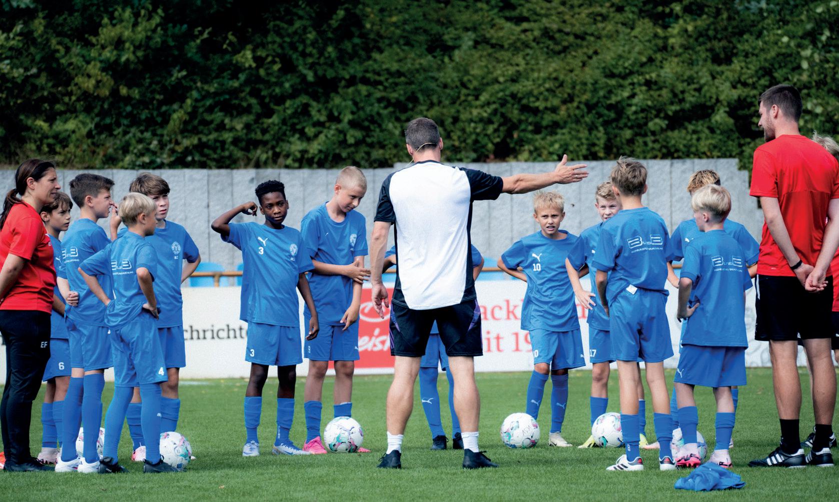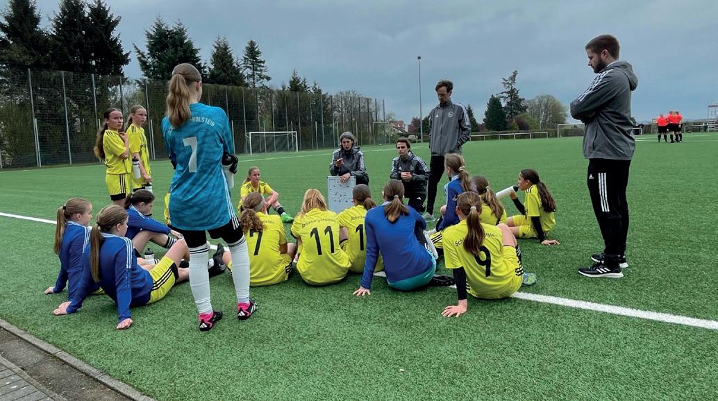 für Nachwuchs, Training und Entwicklung, in Kiel denke. Ich durfte selbst Teil der Partnerveranstaltung mit Holstein Kiel sein, bei der es darum ging, die „Trainingsphilosophie Deutschland“ vorzustellen und hautnah zu erleben. Mehr als 150 Jugendtrainer*innen aus der Region waren vor Ort – ein klasse Event! Was es mit der „Trainingsphilosophie Deutschland“ auf sich hat, lesen Sie auf Seite 12. Und auf Seite 13 erfahren Sie, wie Sie die Ausbildung im Kinderund Jugendfußball der Zukunft mit dem DFB-Mobil in Schulen und Vereinen kennenlernen können. Denn auch nach der Sommerpause rollt das DFB-Mobil durch das Land.