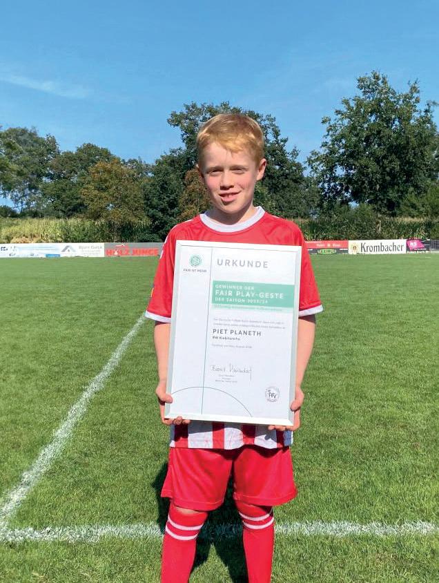 Als Fair-Play-Jahressieger kam für Piet nun eine DFB-Urkunde sowie ein Gutschein für den Besuch