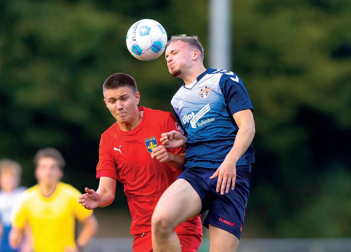 Eutins Falk Fricke-Kranz (li.) und Südholsteins Marcel Bertrand liefern sich ein packendes Kopfballduell.