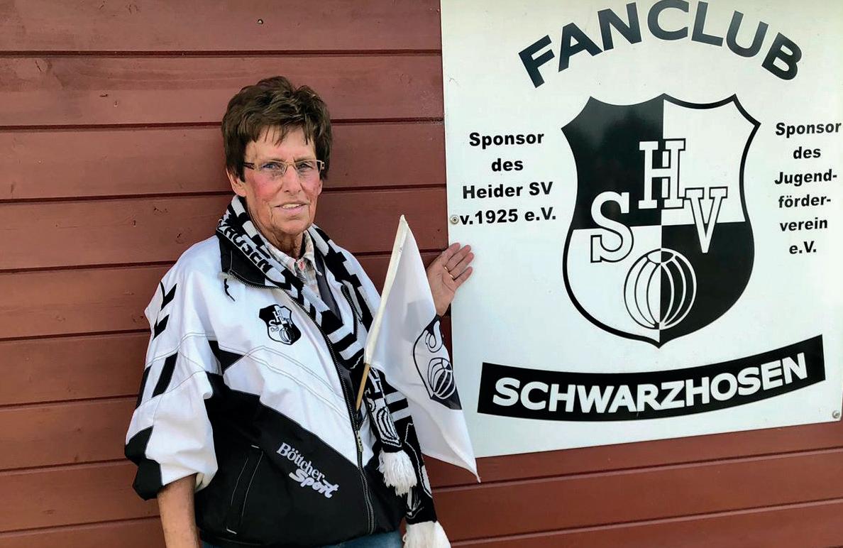 Besser konnte die Kulisse für die Ehrung von Christel Rossmann gar nicht sein! Vor über 700 Zuschauern, die das Oberligaspiel zwischen dem Heider SV und TuS Rotenhof besuchten, wurde am 27. August die ehemalige 1. Vorsitzende des Fanclubs „Schwarzhosen“ mit dem Preis „SHFV überrascht“ bedacht.