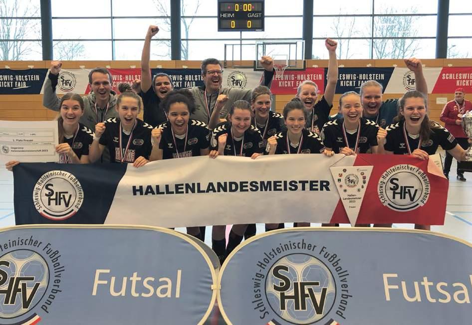 hier durch eine 1:2-Niederlage gegen den TSV Vineta Schacht-Audorf aus dem Turnier verabschieden. Im zweiten Halbfinale kam es zum Aufeinandertreffen der beiden Regionalligisten aus Kiel und Henstedt-Ulzburg, wobei letzterer souverän mit 3:0 in das Finale einzog. Auch hier dominierte das Team um Regionalliga-Trainer Christian Jürss die Partie und verteidigte den Hallenlandesmeistertitel, der seit 2017 immer nach Henstedt-Ulzburg gegangen ist, durch einen 3:0-Sieg.