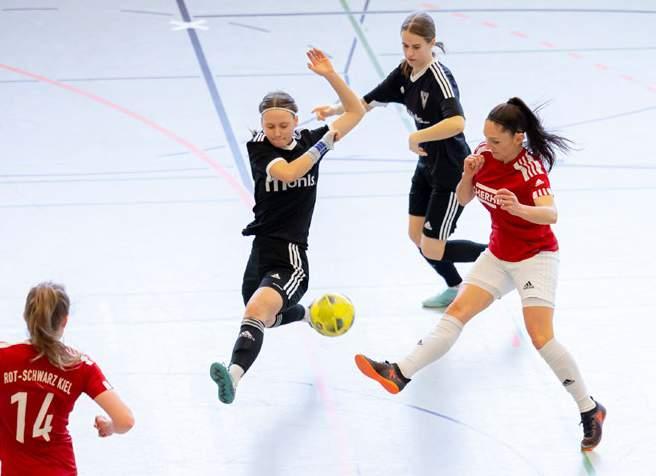 B-Juniorinnen: Holstein Kiel sichert sich Titel Mit Abschluss der C-Junioren-Hallenlandesmeisterschaften starteten die B-Juniorinnen in ihr Turnier. In zwei Vierer-Gruppen traten die besten B-Juniorinnen-Mannschaften gegeneinander an, wobei in Gruppe A insbesondere Atheltika Wiesharde überraschte und ungeschlagen ins Halbfinale einzog. In Gruppe B überzeugte Holstein Kiel mit gewohnt starken Leistungen. Vor vollen Rängen zogen