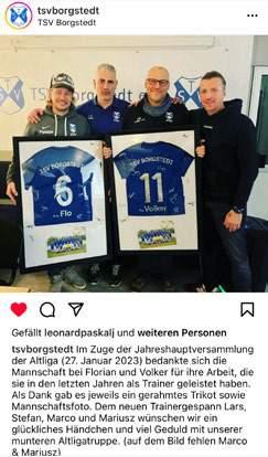 zerstört wurde. Das kleine Eigenheim diente bisweilen zur Lagerung von Materialien und war elementar wichtig für die Verpflegung der Zuschauer*innen an Spieltagen. Ein Heimspiel ohne die geliebte Hütte? Unvorstellbar! So startete TSV-Trainer Wolle Herrenkind einen Aufruf beim Radio Schleswig-Holstein – und hatte tatsächlich Glück. Bereits nach kurzer Zeit meldete sich Gastronom Alban Shimsu vom Restaurant Kanalschuppen, der eine ausgediente Hütte zur Verfügung stellte. Mithilfe einer Vielzahl engagierter Vereinsmitglieder und jeder Menge Spendenbeiträge konnte diese innerhalb kürzester Zeit wieder betriebsfähig gemacht werden.