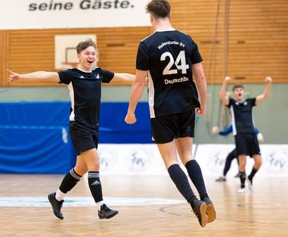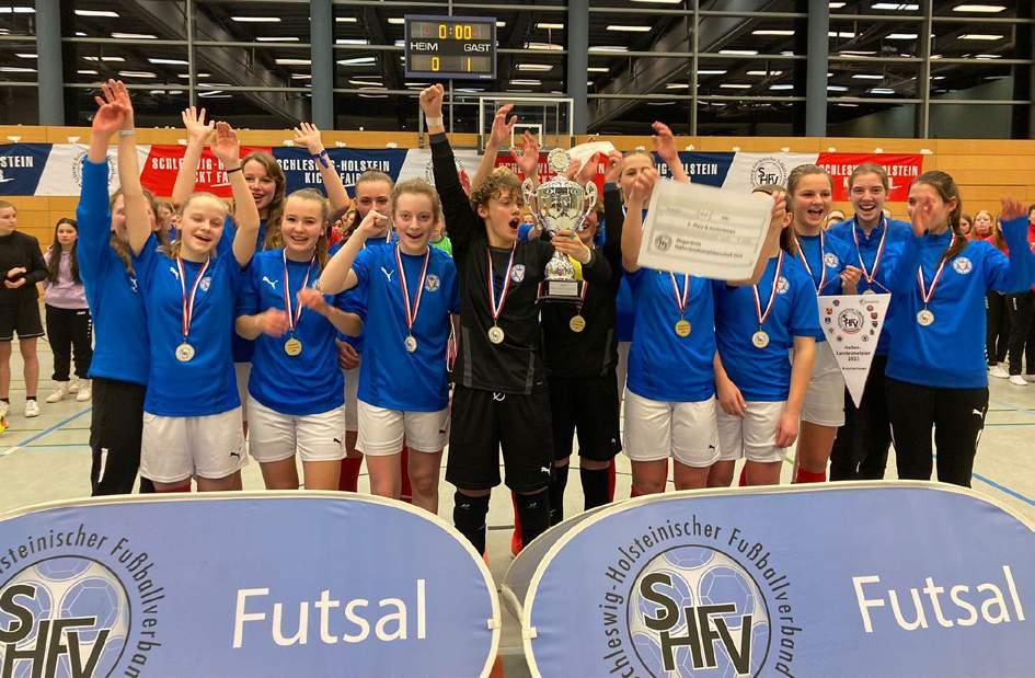 sodass der Landesligist aus Heikendorf im Finale auf den Oberligisten aus dem KFV Westküste traf. Nach dem Spiel um Platz 3, welches der TSV Kronshagen mit einem 3:0-Sieg über den TSV Kropp für sich entscheiden konnte, gestaltete sich eine spannende und intensive Partie, die viele Highlights für die anwesenden Zuschauer*innen bot. Beide Mannschaften konnten ihre Hochkaräter kurz vor Ende der regulären Spielzeit nicht nutzen, sodass auch bei den A-Junioren die Entscheidung vom Punkt fiel. Diesem Druck konnten die Westküsten-Kicker besser standhalten, sodass der große Wanderpokal mit einem 4:3-Sieg im Entscheidungsschießen unter tosendem Applaus an die SG Wilstermarsch überging. Bei den Futsal-Meisterschaften auf NFV-Ebene, für die sich auch bei den A-Junioren der Meister und Vizemeister qualifiziert hatte, überzeugte die SG Wilstermarsch erneut und sicherte sich die Bronzemedaille. Der Heikendorfer SV belegte Platz 7.