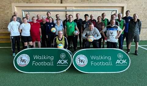 Ein ganz besonderer Tagesordnungspunkt stand Anfang Februar auf der Agenda der ersten Präsidiumssitzung des Jahres 2023. Das SHFV-Präsidium testete die neue Trendsportart Walking Football in der Sporthalle des Uwe Seeler Fußball Parks aus. Unter der Leitung von Fabian Thiesen und Jenny Anthony wurden zunächst erste „Gehversuche“ am Ball gemacht, anschließend trat man in kleinen Teams in Turnierform gegeneinander an. Am Ende waren sich alle Teilnehmer*innen einig, dass die Praxiseinheit großen Spaß gemacht hat und Tagesordnungspunkte dieser Art durchaus öfter auf der Agenda stehen sollten.