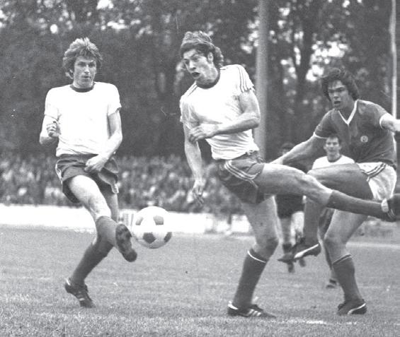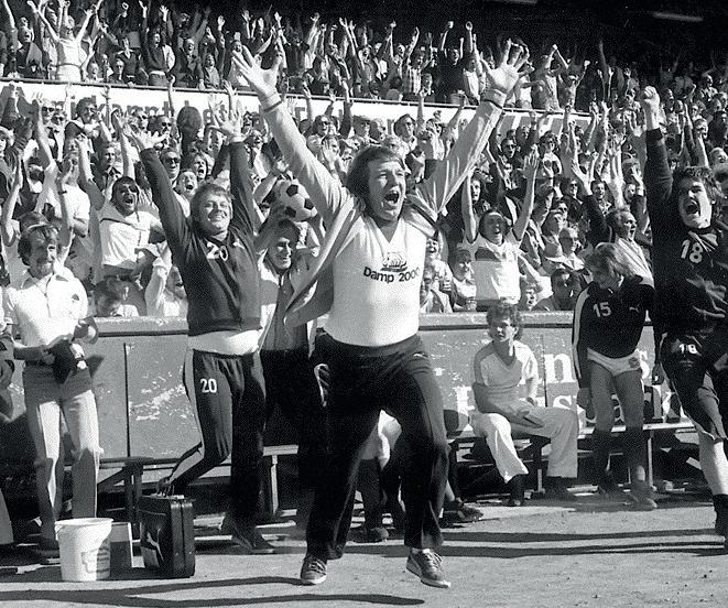 AUFSTIEG IN DIE 2. LIGA Unter Holsteins ewigem Rekordtorjäger und Trainer Gerd Koll gelang den Störchen der Aufstieg in die 2. Liga Nord. Binnen zwei Jahren formte Koll inmitten einer wirtschaftlich prekären Zeit mit zahlreichen Kieler Eigengewächsen aus einem potenziellen Absteiger einen Zweitligisten.