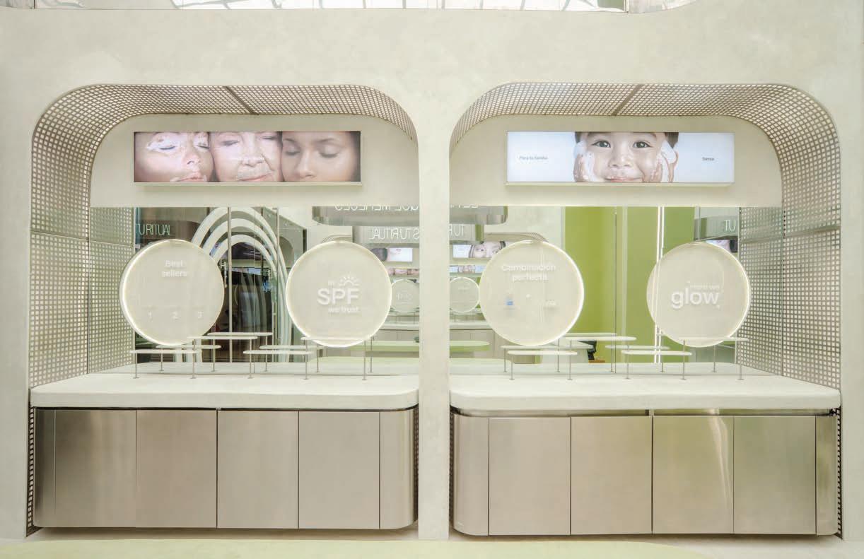 E ciency and quality, Technology and innovation. We aimed to create a commercial space that re ects the essence of its products and the wonderful experience they o er to their customers when incorporating them into their skincare routine.