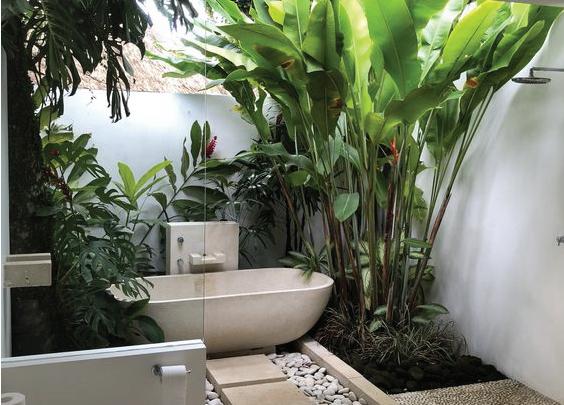 El baño principal contará con funcionalidades de spa como una ducha exterior y jacuzzi, ubicados estratégicamente para ofrecer privacidad y vistas al paisaje. La piscina será el foco de la vida al aire libre, complementada con una terraza y parrillera, creando un ambiente ideal para el entretenimiento y la relajación.