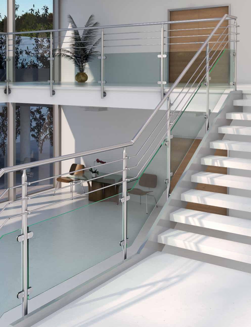 fr | Au design élégant du modèle LASER s’ajoute, dans la variante LASER PLUS, une rotule sphérique pour supports de lisse, ce qui la rend adaptée aux escaliers / garde-corps inclinés. Dans le modèle LASER GLASS, les éléments en verre inclinés, fixés au moyen de pinces, contribuent à un design dynamique et innovant.