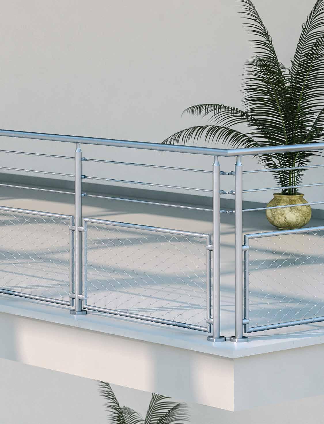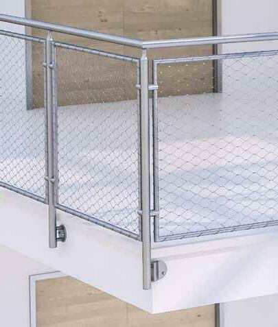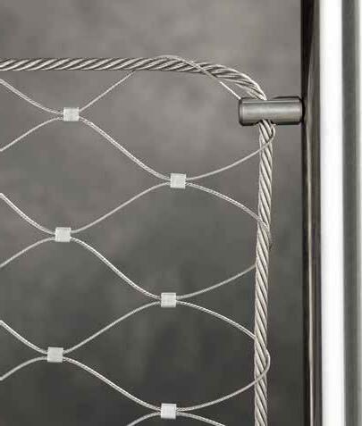 fr | Filet en inox X-TEND: C’est tout particulièrement en extérieur que l’on peut apprécier ses caractéristiques exceptionnelles : son élasticité mais aussi la grande variété de largeurs de mailles, de types de fixation et de solutions d’encadrement. Les possibilités en termes de forme et configuration des filets fixés sur câble périmétrique sont quasiment illimitées.
