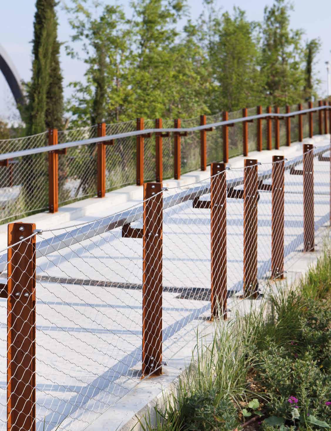 en | Stainless steel netting X-TEND: Especially in outdoor areas it convinces with its outstanding characteristics. Besides a rich variety of flexible openings of meshes, mounting methods and corner solutions the materials‘ flexibility is highly appreciated. There are almost unlimited design solutions which are possible by mounting nets on free-form edge ropes.