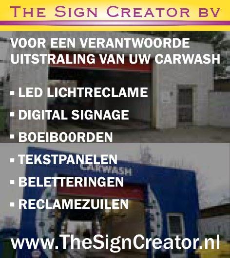 Dit bedrijf uit Eindhoven voorziet van oorsprong al decennia tankstations van reclame uitingen. Denk aan boeiborden, pompeiland verlichting, LED prijzenborden. Sinds een aantal jaar krijgt het bedrijf ook steeds meer opdrachten uit de carwashbranche. Veelal worden nieuwe boeiborden gemaakt en aan de washal geplaatst, zoals recent bij een roll-over locatie in Capelle aan den IJsel (zie foto links). “Het boeibord bestaat uit aluminium sandwich panelen, in-gefreesd en omgezet, doorgestoken acrylaat met daarin slow-led verlichting (10 jaar fabrieksgarantie) Maar het is ook mogelijk om het gehele pand een nieuwe look te geven zoals te zien op foto rechts. Binnenkort is via The Sign Creator het ook mogelijk om Disco-verlichting in de roll-over en/of wasstraat te laten plaatsen.