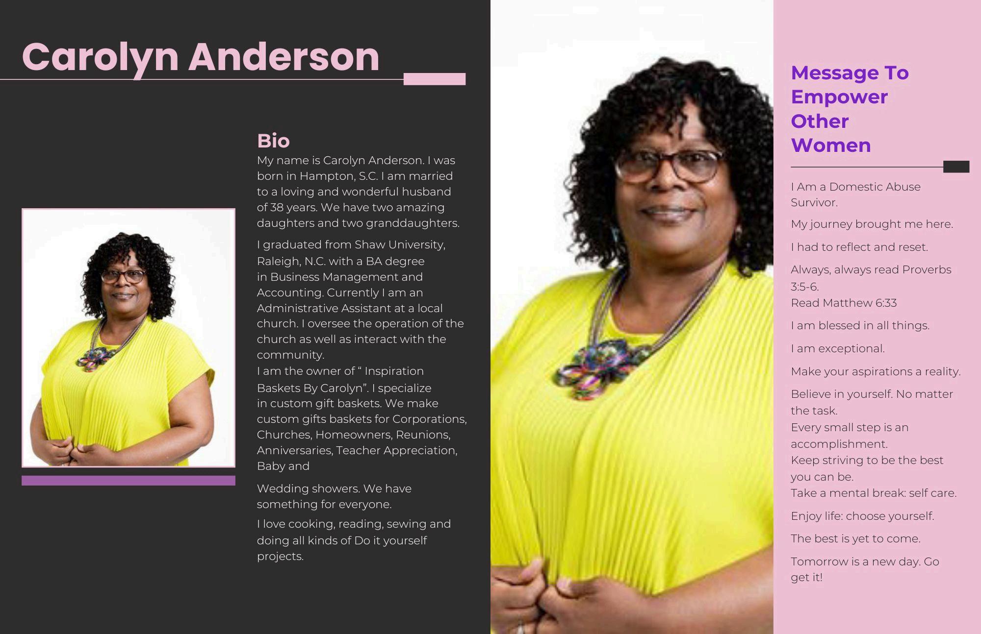 I’m a native to St. Helena Island, South Carolina; born and raised. I’m a mother to seven children and grandmother to eighteen grandchildren I enjoy cooking, baking, and dancing But my truest love sewing, creating, and refashioning clothes. My best friend is my sewing machine Doing this Pink and Purple Runway Experience 20 fashion show is an opportunity for me to give and show my support to the organization and represent myself as well as many others who have survived either cancer or domestic violence