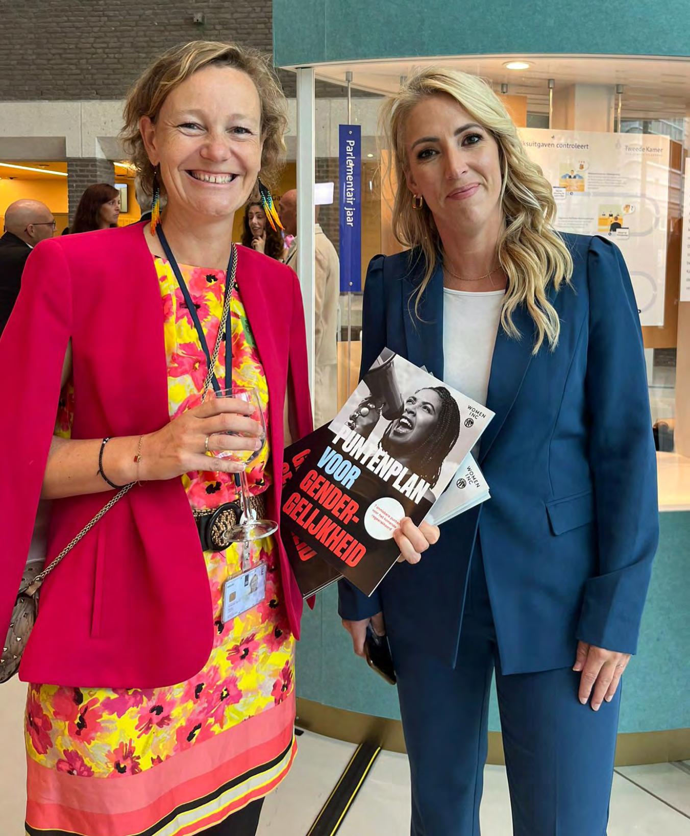Tegelijkertijd zijn we alweer volop bezig met de aanstaande verkiezingen. Daarvoor lanceerden wij eind deze zomer het Puntenplan voor Gendergelijkheid. Verderop in dit magazine staat beschreven hoe we na de val van het kabinet naar de verkiezingen toewerken om te zorgen dat een volgend kabinet werk maakt van gendergelijkheid.